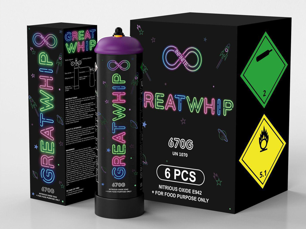 Filled with 670g of ultra-pure, food-grade nitrous oxide, the Greatwhip Professional cream charger/drink infusion canisters offer superior quality N2O propellant to ensure optimal results every time.